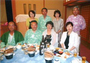 祝宴では懐かしさが爆発。夢中で延々と話し込むグループ、カラオケで自慢のノドを披露する人、行列をつくり先頭に立って河内音頭を踊る人、壇上にあげて集藩ごとにまとめた写真を撮る人等々、時間を超えるクライマックスでした。