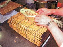 日の丸醸造へ青梅2,400Kg出荷今年もリキュール「梅まんさく」のため、 7月4日~8日の5日間34人の会員から青梅を集荷し、 2, 400kgを出荷しました。 2トンの約束でしたがオーバーした分も引き取っていただきました。、今年は梅の豊作で値段も安くなっていたようですが価格も昨年同様となり、 日の丸醸造の社長には感謝しております。 大屋納豆が再生6月11日、大屋新町の三浦タエ子さん、笹山チヤさんのお二人から指導を受け大屋納豆の再現に挑戦しました。大屋納豆は大屋の歴史を持つ大切な伝統文化と考えられます。 このまま廃れてしまわないように、 この技術を後世に残して置く必要があると思われたからです。大豆は「J Aふるさと」が調達してくれました。 ワラは大屋古代米研究会が提供、 さかえ館の調理室で作りました。大屋納豆の特徴は最初に豆を炒ることです。小川一見さんの家にあったホウロク鍋を使用しました。そして豆を煮てワラに包み、二晩小川茂雄さんの育苗器や電気カーペットで寝かせたら見事ネバネバ納豆ができました。この納豆をこれからどのように利用できるか保健所と話し合った結果、納豆汁としてなら利用できることが分かりました。すぐに思いついたのは観梅会の時、柳田駅でイベントを開催することです。 J Rと話す機会はないかと機会を伺っていたら、知事との意見交換会の発表者に選ばれ、その時知事が内陸鉄道で問題を抱えていましたのでJ Rとの仲介をしていただきたいと頼みました。その結果は今後どうなるか見ていただきたいと思います。